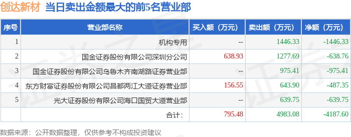 从龙虎榜公布的当日买卖数据来看,机构合计净卖出1446.33万元。