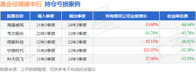 盛丰衍管理的西部利得人工智能主题指数增强A基金在21年3季度买入海康威视,在持有3年又0个季度后在24年3季度卖出。持有期间的估算收益率为-44.64%,持有期间海康威视在2021年到2024年的年报营业总收入增幅达13.6%。