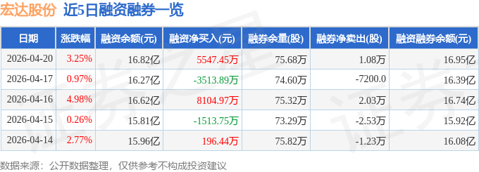 证券之星消息,截至2026年4月20日收盘,宏达股份(600331)报收于17.13元,上涨3.25%,换手率3.05%,成交量62.01万手,成交额10.61亿元。