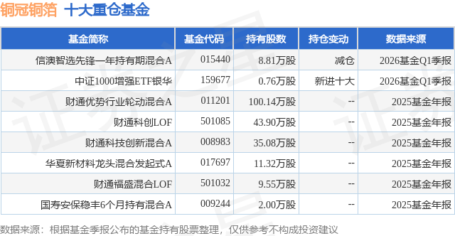 重仓铜冠铜箔的公募基金请见下表: