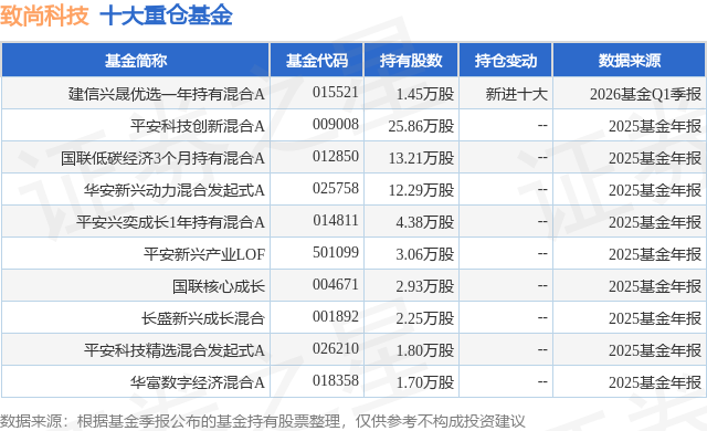 重仓致尚科技的前十大公募基金请见下表: