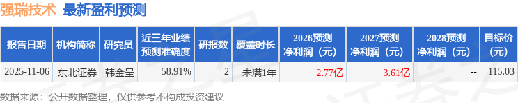 强瑞技术2025年年报显示,当年度公司主营收入18.19亿元,同比上升61.46%;归母净利润1.42亿元,同比上升45.21%;扣非净利润1.35亿元,同比上升46.1%;其中2025年第四季度,公司单季度主营收入4.47亿元,同比上升30.99%;单季度归母净利润2572.69万元,同比上升41.5%;单季度扣非净利润2286.24万元,同比上升34.95%;负债率50.82%,投资收益384.43万元,财务费用925.52万元,毛利率25.63%。