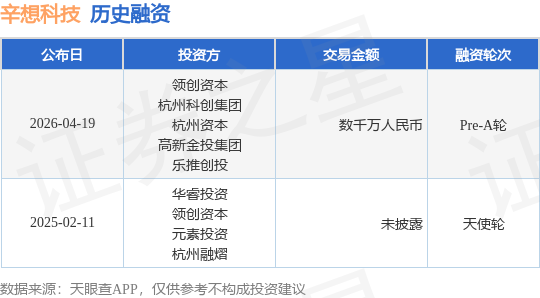 证券之星消息,根据天眼查APP于4月19日公布的信息整理,杭州辛想科技有限公司Pre-A轮融资,融资额数千万人民币,参与投资的机构包括领创资本,杭州科创集团,杭州资本,高新金投集团,乐推创投。