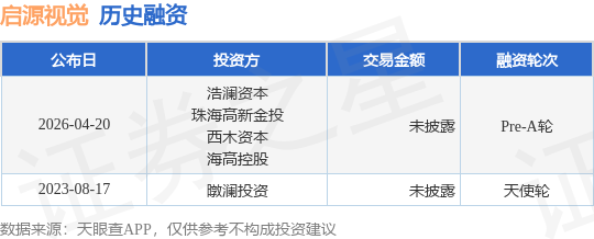 证券之星消息,根据天眼查APP于4月20日公布的信息整理,杭州启源视觉科技有限公司Pre-A轮融资,融资额未披露,参与投资的机构包括浩澜资本,珠海高新金投,西木资本,海高控股。