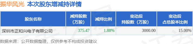 证券之星消息,4月21日振华风光发布公告《振华风光:贵州振华风光半导体股份有限公司简式权益变动报告书(深圳正和兴)》,其股东深圳市正和兴电子有限公司于2026年4月20日合计减持375.47万股,占公司目前总股本的1.8774%,变动期间该股股价上涨1.1%,截止4月20日收盘报51.7元。
