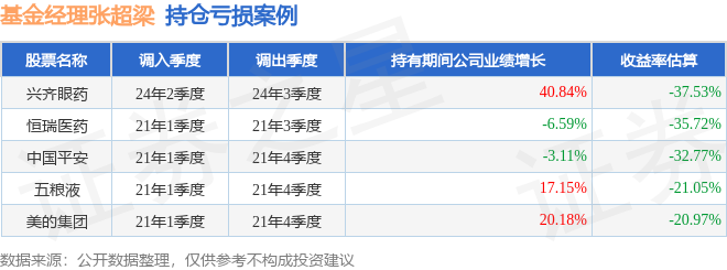 张超梁管理的中创400ETF嘉实基金在24年2季度买入兴齐眼药,在持有1个季度后在24年3季度卖出。持有期间的估算收益率为-37.53%,持有期间兴齐眼药在2023年到2024年的年报归属净利润增幅达40.84%。
