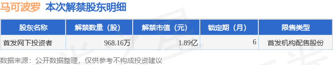 证券之星消息,根据市场公开信息整理,马可波罗(001386)于4月22日将有968.16万股限售股份解禁,为公司首发机构配售股份,占公司总股本0.81%。(本次数据根据历史公告整理得出,实际情况以上市公司最新公告为准)本次解禁后,公司还有10.87亿股限售股份,占总股本91.0%。具体如下图所示: