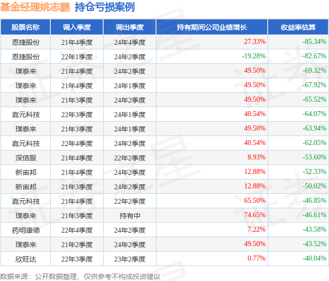 姚志鹏管理的嘉实智能汽车股票基金在21年4季度买入恩捷股份,在持有3年又0个季度后在24年4季度卖出。持有期间的估算收益率为-85.34%,持有期间恩捷股份在2021年到2024年的年报营业总收入增幅达27.33%。