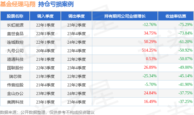 马翔管理的汇添富北交所创新精选两年定开混合A基金在22年1季度买入长虹能源,在持有1年又1个季度后在23年2季度卖出。持有期间的估算收益率为-75.29%,持有期间长虹能源在2022年到2023年的年报营业总收入降幅为12.76%。