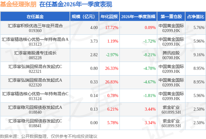证券之星消息,截止2026年一季度末,基金经理张朋旗下共管理8只基金,本季度表现最佳的为汇添富稳元回报债券发起式A(018840),季度净值涨3.44%。