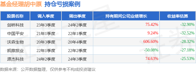 胡中原管理的华商双翼平衡混合A基金在23年3季度买入剑桥科技,在持有3个季度后在24年2季度卖出。持有期间的估算收益率为-32.9%,持有期间剑桥科技在2023年到2024年的年报归属净利润增幅达75.42%。