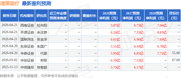 最新盈利预测明细如下: