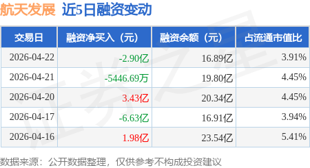 证券之星消息,4月22日,航天发展(000547)融资买入3.13亿元,融资偿还6.03亿元,融资净卖出2.9亿元,融资余额16.89亿元。