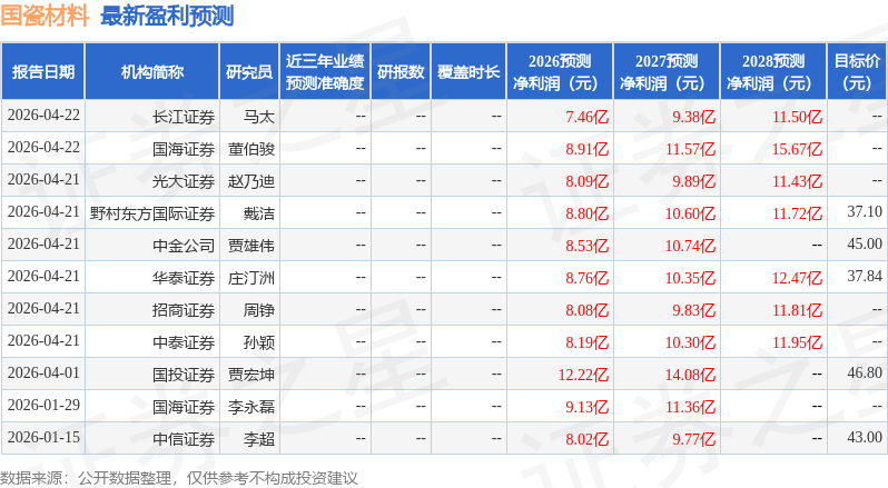 东兴证券股份有限公司刘宇卓近期对国瓷材料进行研究并发布了研究报告《重点业务稳健增长,新产品新项目打开成长空间》,给予国瓷材料买入评级。