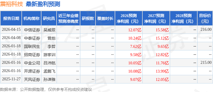 最新盈利预测明细如下: