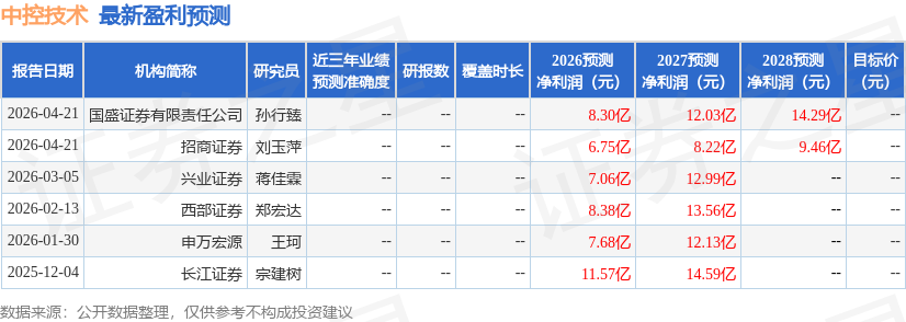 最新盈利预测明细如下: