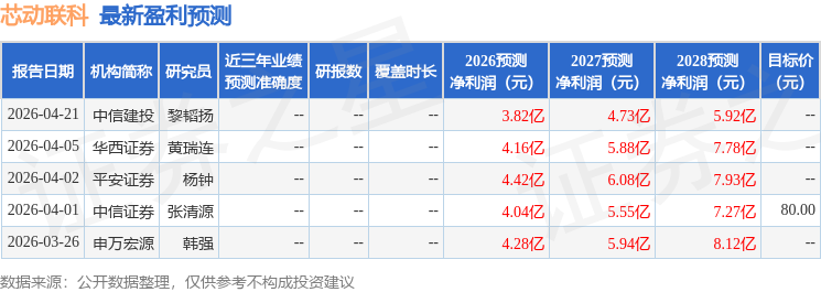最新盈利预测明细如下: