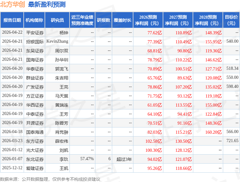 最新盈利预测明细如下: