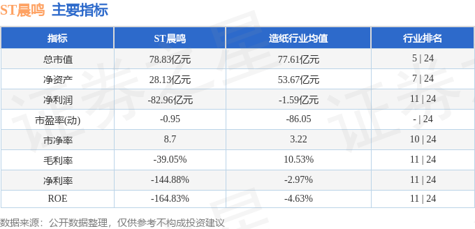 ST晨鸣主要指标及行业内排名如下: