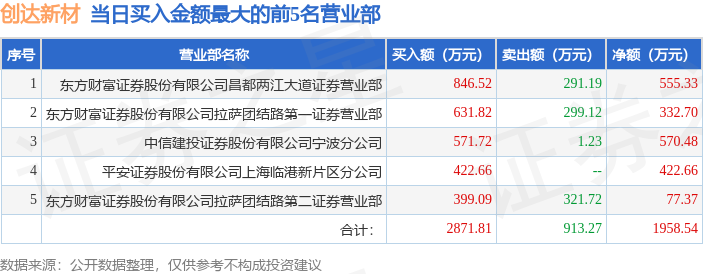 证券之星消息,沪深交易所2026年4月23日公布的交易公开信息显示,创达新材(920012)因当日换手率达到20%的前5只股票登上龙虎榜。此次是近5个交易日内第5次上榜。