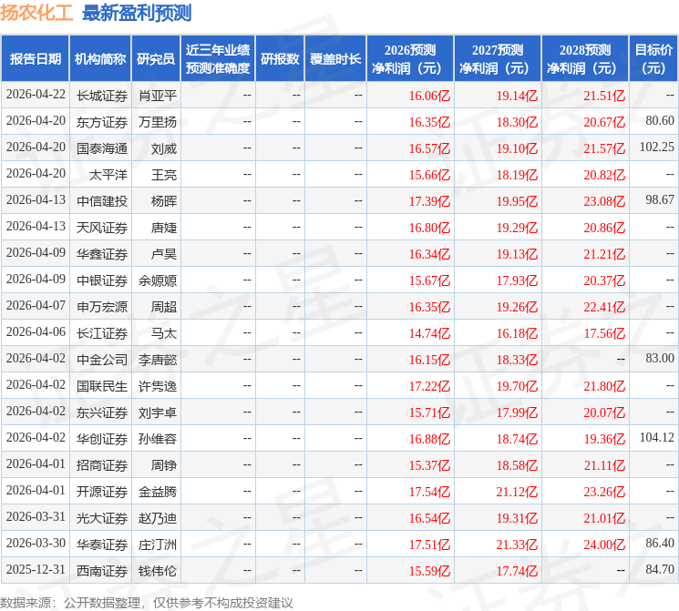 以下是详细的盈利预测信息: