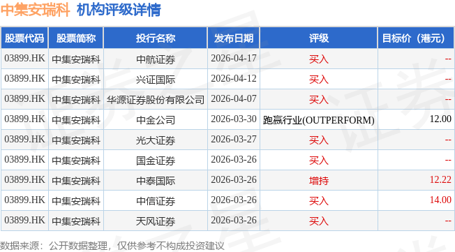 截至2026年4月23日收盘,中集安瑞科(03899.HK)报收于10.27港元,上涨0.29%,成交量311.05万股,成交额3174.91万港元。投行对该股的评级以买入为主,近90天内共有7家投行给出买入评级,近90天的目标均价为12.74港元。中航证券最新一份研报给予中集安瑞科买入评级。