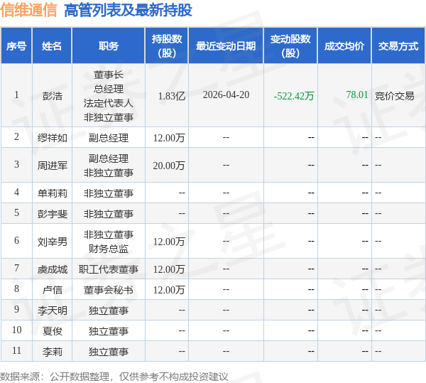 信维通信的高管列表及最新持股情况如下: