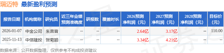 瑞迈特2025年年报显示,当年度公司主营收入11.59亿元,同比上升37.46%;归母净利润2.26亿元,同比上升45.23%;扣非净利润1.85亿元,同比上升99.72%;其中2025年第四季度,公司单季度主营收入3.51亿元,同比上升45.49%;单季度归母净利润4564.67万元,同比上升50.84%;单季度扣非净利润4496.25万元,同比上升545.15%;负债率10.09%,投资收益4272.24万元,财务费用156.93万元,毛利率52.93%。