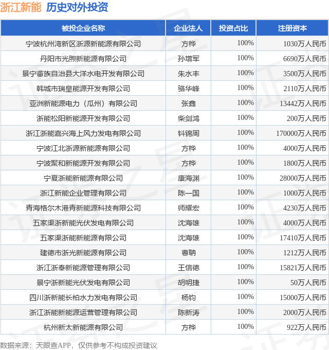 证券之星消息,根据天眼查APP显示,浙江新能(600032.SH)新增一起对外投资事件,被投资公司为杭州晟岚新能源有限公司,法定代表人史诗栩,投资占比为4.04%。该公司从事电力、热力生产和供应业,注册资本为50万人民币。目前,浙江新能共存在对外投资90项,投资占比前20的项目见下表: