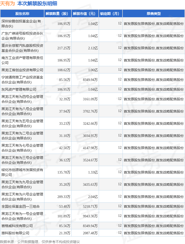 本次解禁涉及股东明细见下表: