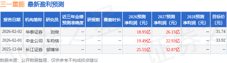 最新盈利预测明细如下: