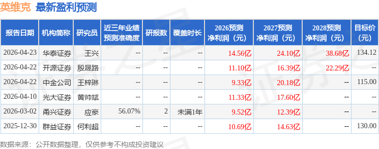 证券之星数据中心根据近三年发布的研报数据计算,甬兴证券应豪研究员团队对该股研究较为深入,近三年预测准确度均值为56.07%,其预测2026年度归属净利润为盈利9.52亿,根据现价换算的预测PE为103.79。