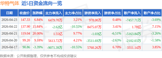 4月23日的资金流向数据方面,主力资金净流入6479.7万元,占总成交额3.21%,游资资金净流入978.0万元,占总成交额0.48%,散户资金净流出7457.71万元,占总成交额3.69%。