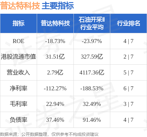 普达特科技港股市值31.51亿港元,在石油开采Ⅱ行业中排名第2。主要指标见下表: