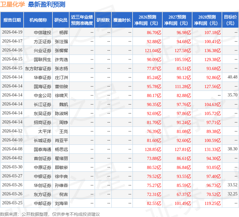 西南证券股份有限公司甄理,钱伟伦近期对卫星化学进行研究并发布了研究报告《2026年一季报点评:轻烃一体化优势明显,C2、C3产业链布局完善》,上调卫星化学目标价至34.32元,给予买入评级。
