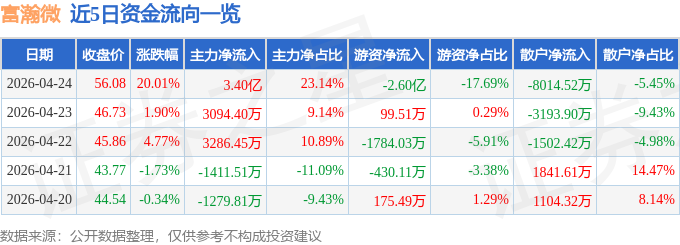 4月24日的资金流向数据方面,主力资金净流入3.4亿元,占总成交额23.14%,游资资金净流出2.6亿元,占总成交额17.69%,散户资金净流出8014.52万元,占总成交额5.45%。