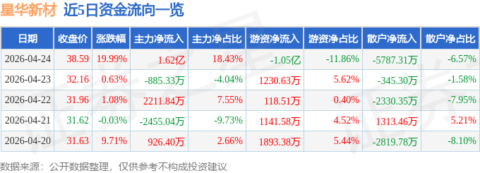 证券之星消息,星华新材4月24日涨停收盘,收盘价38.59元。该股于13点0分涨停,未打开涨停,截止收盘封单资金为2836.3万元,占其流通市值0.77%。