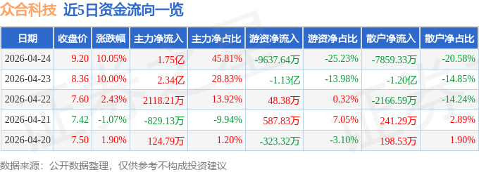 4月24日的资金流向数据方面,主力资金净流入1.75亿元,占总成交额45.81%,游资资金净流出9637.64万元,占总成交额25.23%,散户资金净流出7859.33万元,占总成交额20.58%。
