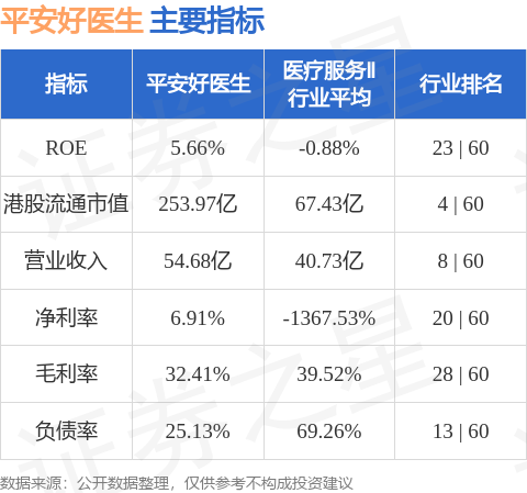 平安好医生港股市值253.97亿港元,在医疗服务Ⅱ行业中排名第4。主要指标见下表: