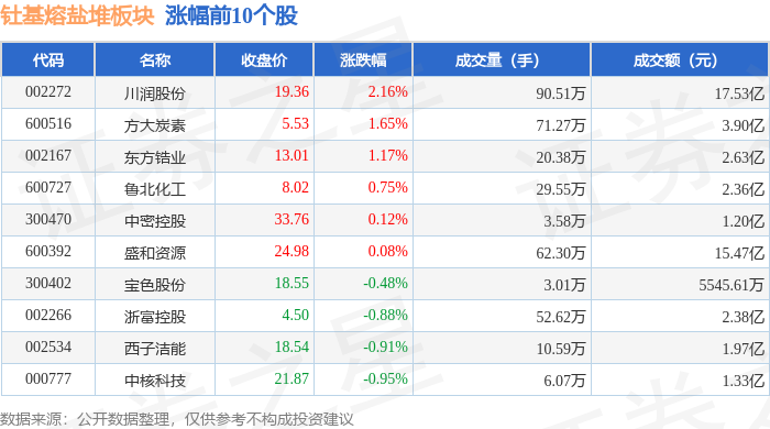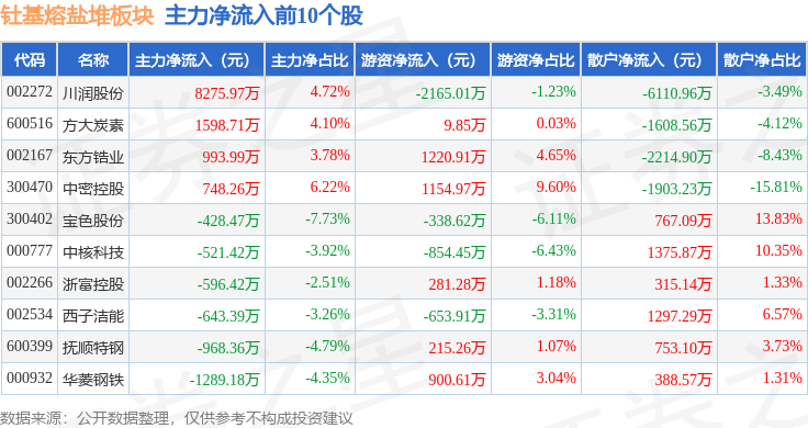 从资金流向上来看,当日钍基熔盐堆板块主力资金净流出14.58亿元,游资资金净流出7429.53万元,散户资金净流入15.32亿元。钍基熔盐堆板块个股资金流向见下表:
