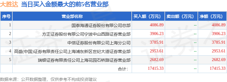 证券小知识:龙虎榜是交易所披露的竞价交易公开信息,现身龙虎榜的个股都是当日最为活跃的个股,是投资者日常重点关注的数据。交易所公布当日买入金额和卖出金额前五名的席位,其中一些席位代表特殊意义,如机构专用席位是指基金专用席位、券商自营专用席位、社保专用席位、券商理财专用席位、保险机构专用席位、保险机构租用席位、QFII专用席位等机构投资者买卖证券的专用通道和席位。深股通专用、沪股通专用为北向资金的交易席位。