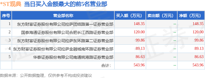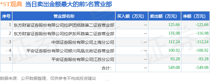 证券之星消息,沪深交易所2026年4月24日公布的交易公开信息显示,*ST观典(688287)因有价格涨跌幅限制的日价格振幅达到30%的前五只证券登上龙虎榜。此次是近5个交易日内第3次上榜。