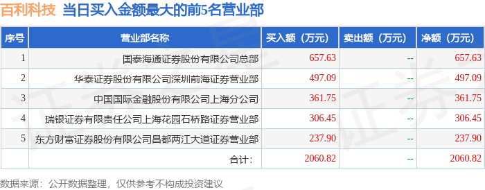 证券小知识:龙虎榜是交易所披露的竞价交易公开信息,现身龙虎榜的个股都是当日最为活跃的个股,是投资者日常重点关注的数据。交易所公布当日买入金额和卖出金额前五名的席位,其中一些席位代表特殊意义,如机构专用席位是指基金专用席位、券商自营专用席位、社保专用席位、券商理财专用席位、保险机构专用席位、保险机构租用席位、QFII专用席位等机构投资者买卖证券的专用通道和席位。深股通专用、沪股通专用为北向资金的交易席位。