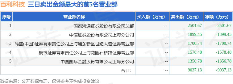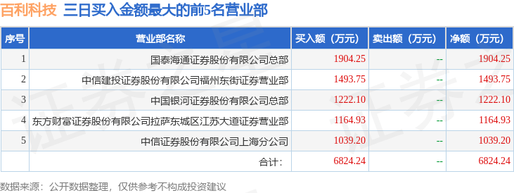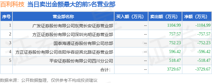 证券之星消息,沪深交易所2026年4月24日公布的交易公开信息显示,百利科技(603959)因有价格涨跌幅限制的日收盘价格跌幅偏离值达到7%的前五只证券,非ST、*ST和S证券连续三个交易日内收盘价格跌幅偏离值累计达到20%的证券登上龙虎榜。此次是近5个交易日内第2次上榜。