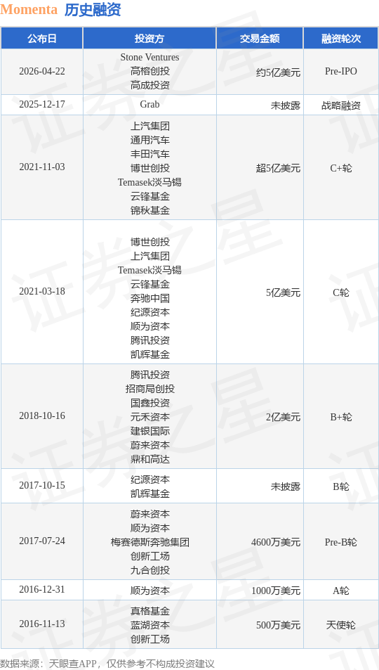 证券之星消息,根据天眼查APP于4月22日公布的信息整理,北京初速度科技有限公司Pre-IPO融资,融资额约5亿美元,参与投资的机构包括Stone Ventures,高榕创投,高成投资,投后估值60亿美元。