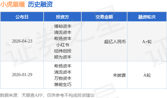 证券之星消息,根据天眼查APP于4月23日公布的信息整理,深圳小虎星曈科技有限公司A+轮融资,融资额超亿人民币,参与投资的机构包括博裕资本,清流资本,希扬资本,小红书,经纬创投,顺为资本。