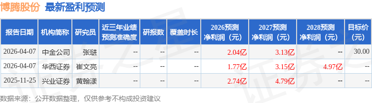 最新盈利预测明细如下: