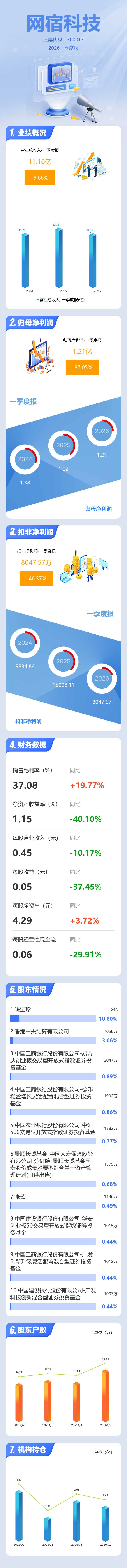 证券之星消息,网宿科技2026年一季报显示,一季度公司主营收入11.16亿元,同比下降9.66%;归母净利润1.21亿元,同比下降37.06%;扣非净利润8047.57万元,同比下降46.38%;负债率11.95%,投资收益-8.19万元,财务费用5509.59万元,毛利率37.08%。