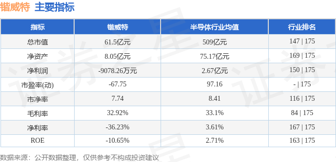 锴威特(688693)主营业务:功率半导体的设计、研发和销售,并提供相关技术服务。 锴威特2025年年报显示,当年度公司主营收入2.55亿元,同比上升95.62%;归母净利润-9078.26万元,同比上升6.59%;扣非净利润-1.03亿元,同比上升4.56%;其中2025年第四季度,公司单季度主营收入6950.34万元,同比上升84.65%;单季度归母净利润-4199.69万元,同比上升29.27%;单季度扣非净利润-4741.17万元,同比上升23.9%;负债率13.94%,投资收益824.11万元,财务费用-136.23万元,毛利率32.92%。