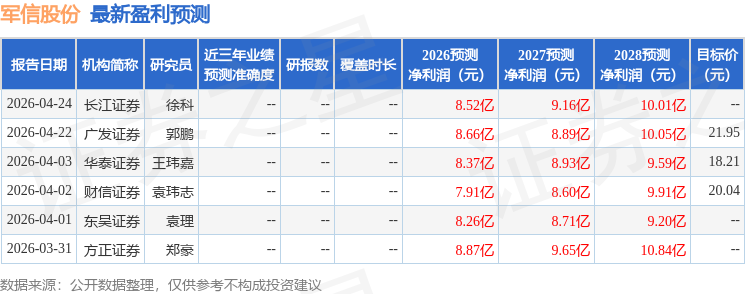 最新盈利预测明细如下:
